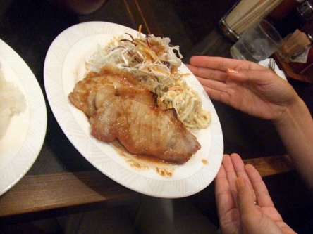 私はやっぱりしょうが焼き、ごはんは半分でお願いします